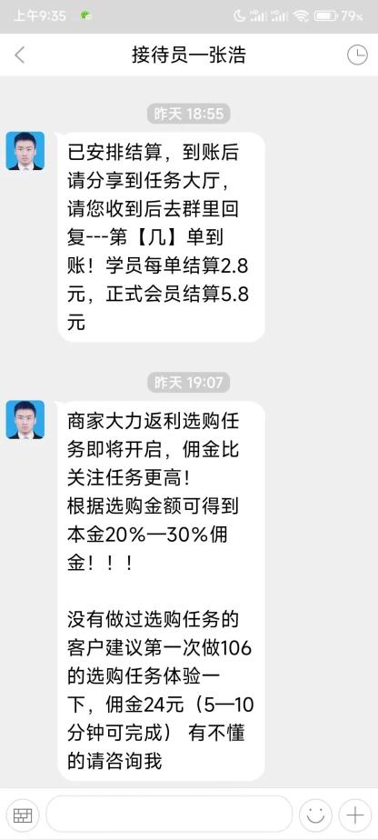 群内有人发红包做任务,即关注某个公众号,赚取佣金,并且将佣金红包截图发到群里, 引诱没有做任务的人上钩。
